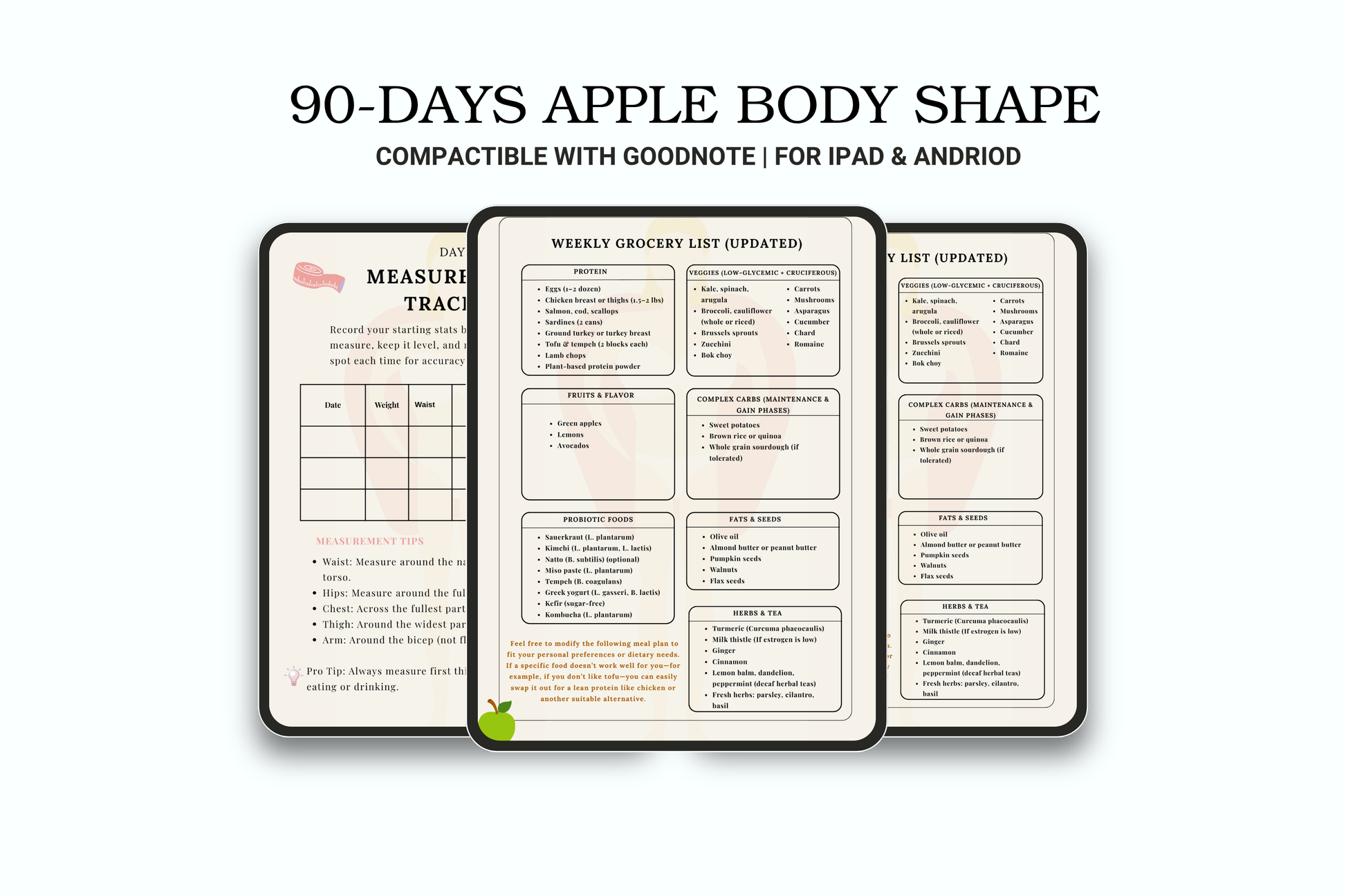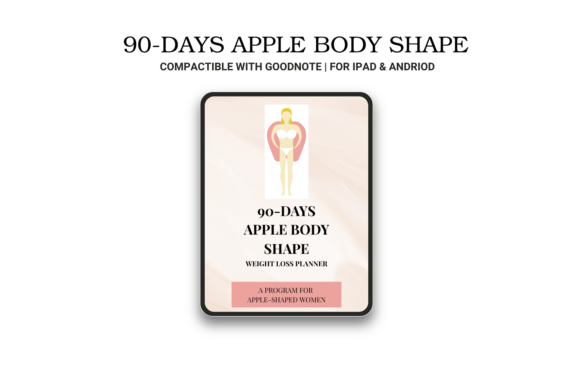 Transform your health and confidence with this 90-Day Apple Body Shape Planner, designed specifically for women who carry weight in the upper body, stomach, chest, and midsection—and have narrow hips and thighs.